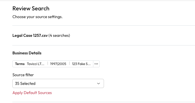 Choose the sources each search/row of your file will be searched within. You can choose any number of sources from those available to you within Aiimi Insight Engine.