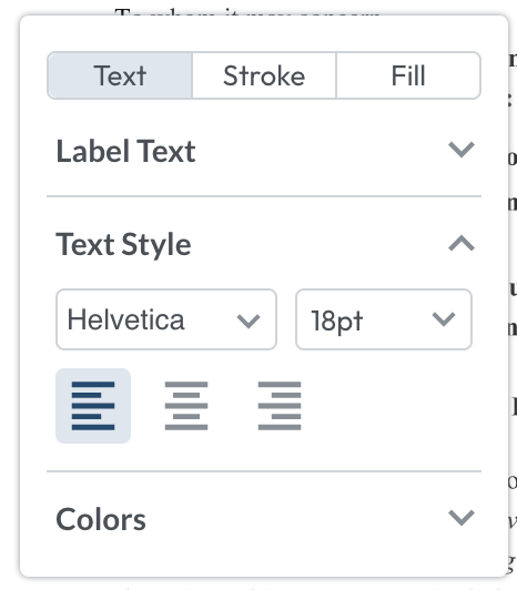 From here you can change fonts, add labels and change the redaction colour.