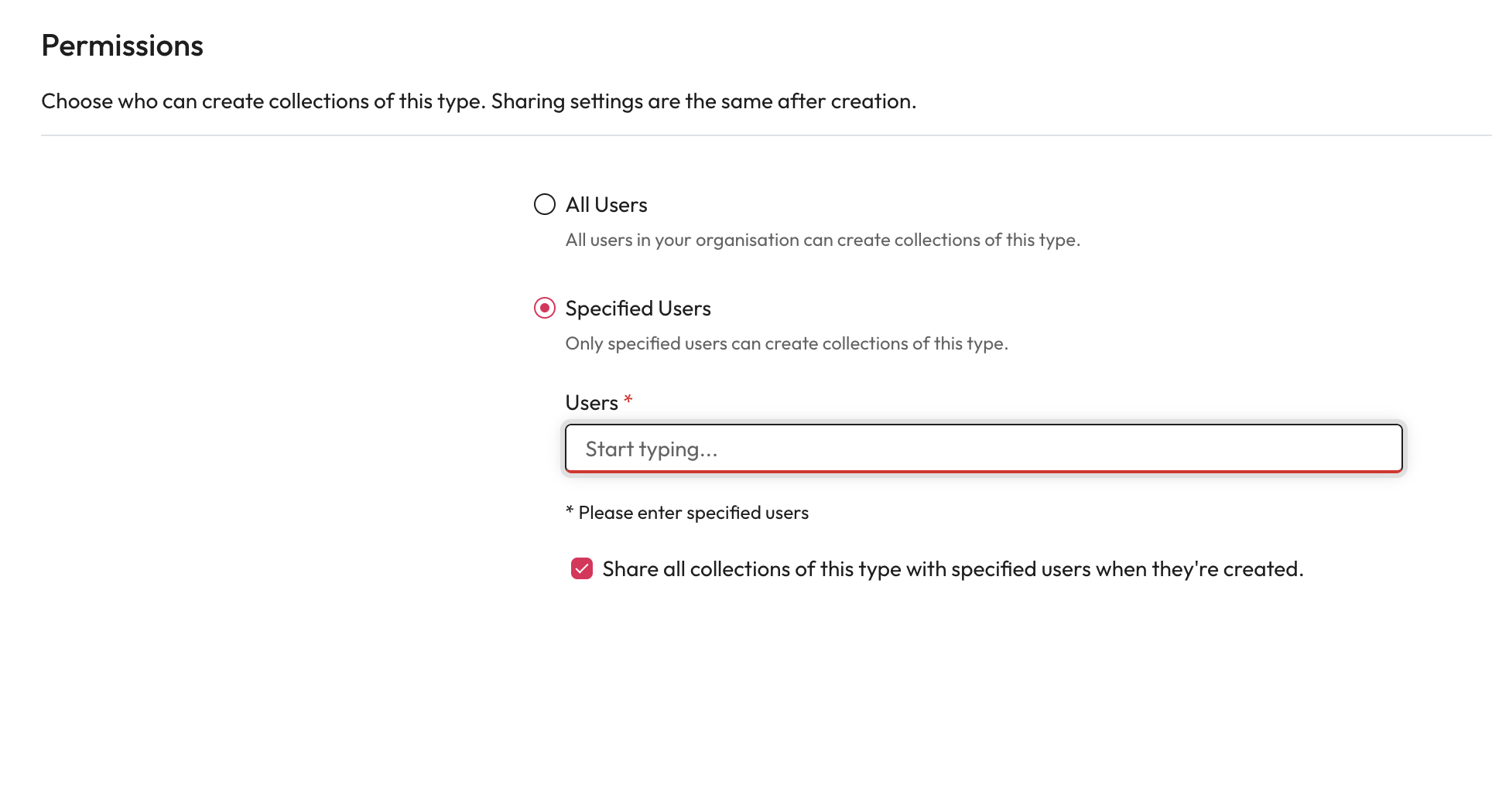 * This will mean all new collections of this type will also be shared with the specified users.