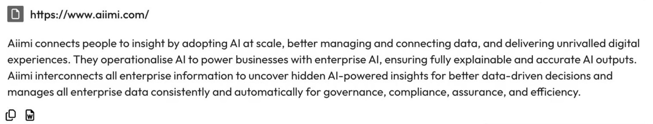 You can give Aiimigo the URL of a website to discuss. It will use the URL to research before it gives you a response.