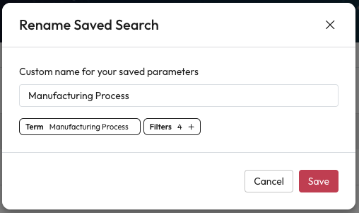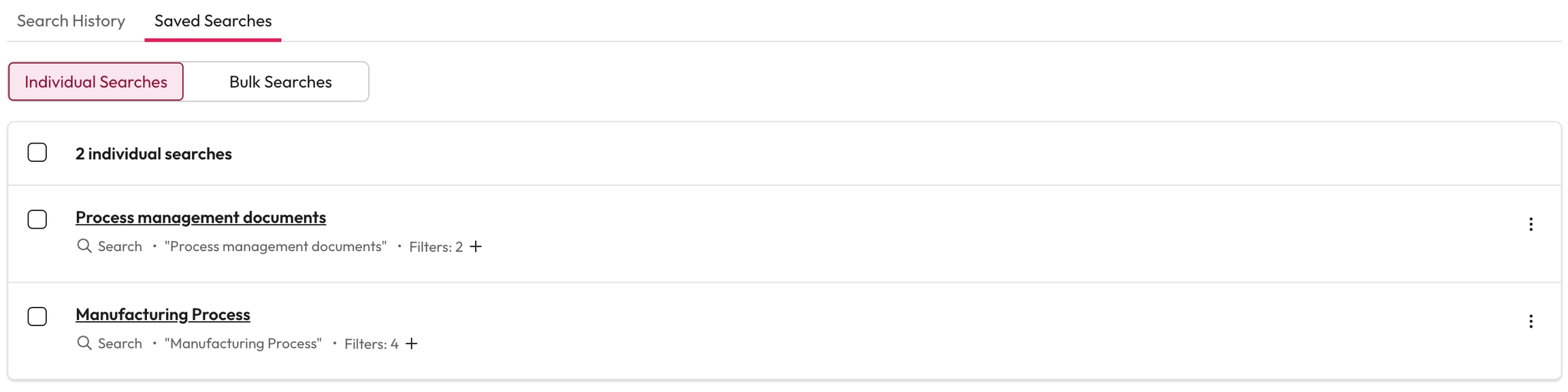 Within your Saved Searches area you will see a table containing all your saved searches. It will show you the name, what application they were saved in, the search terms and filters set for this search.
