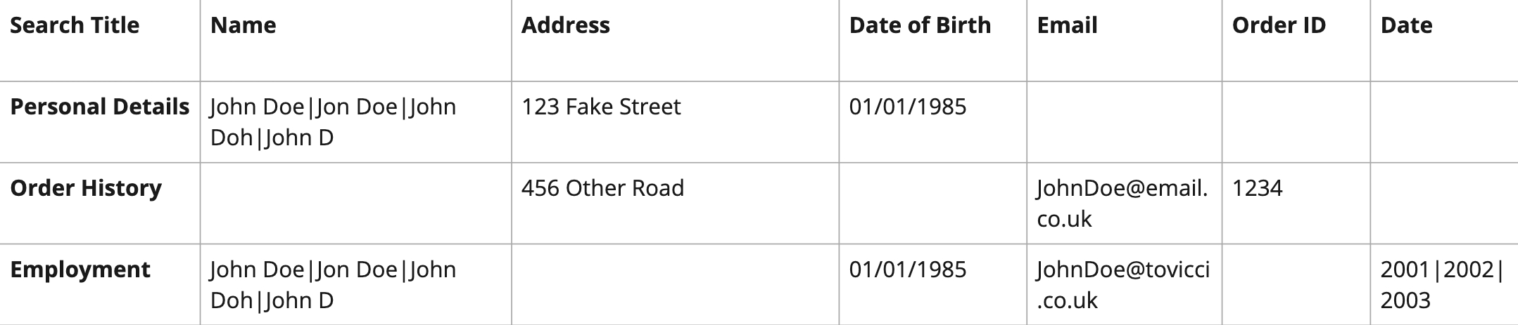 Imagine you're investigating a right to be forgotten request and you need to find any items relating to it. You need to search names and typos, their address, customer details and contract numbers individually. All of which take time and effort.