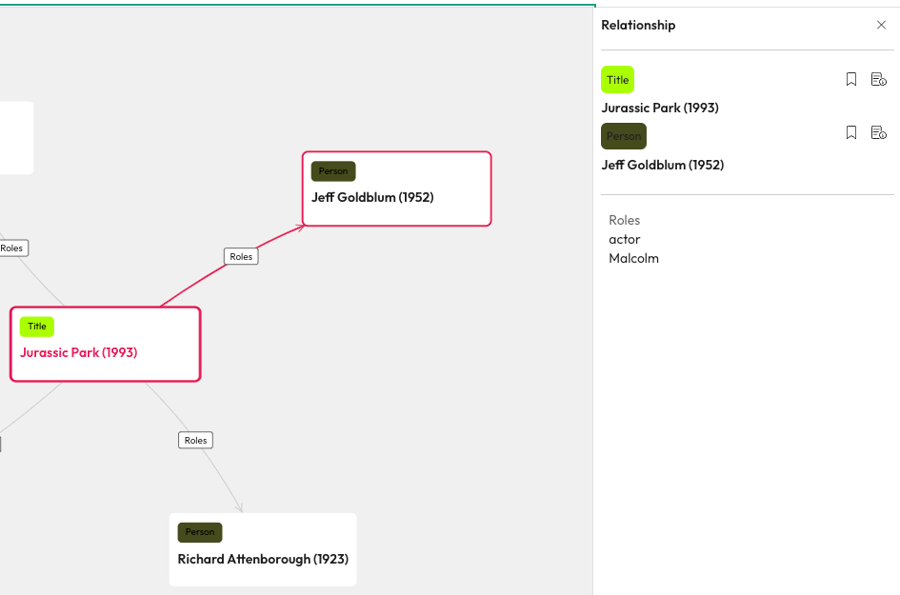 Investigate the detail behind a connection for a greater understanding of your data. The line between two cards will show you the main connection reason.
