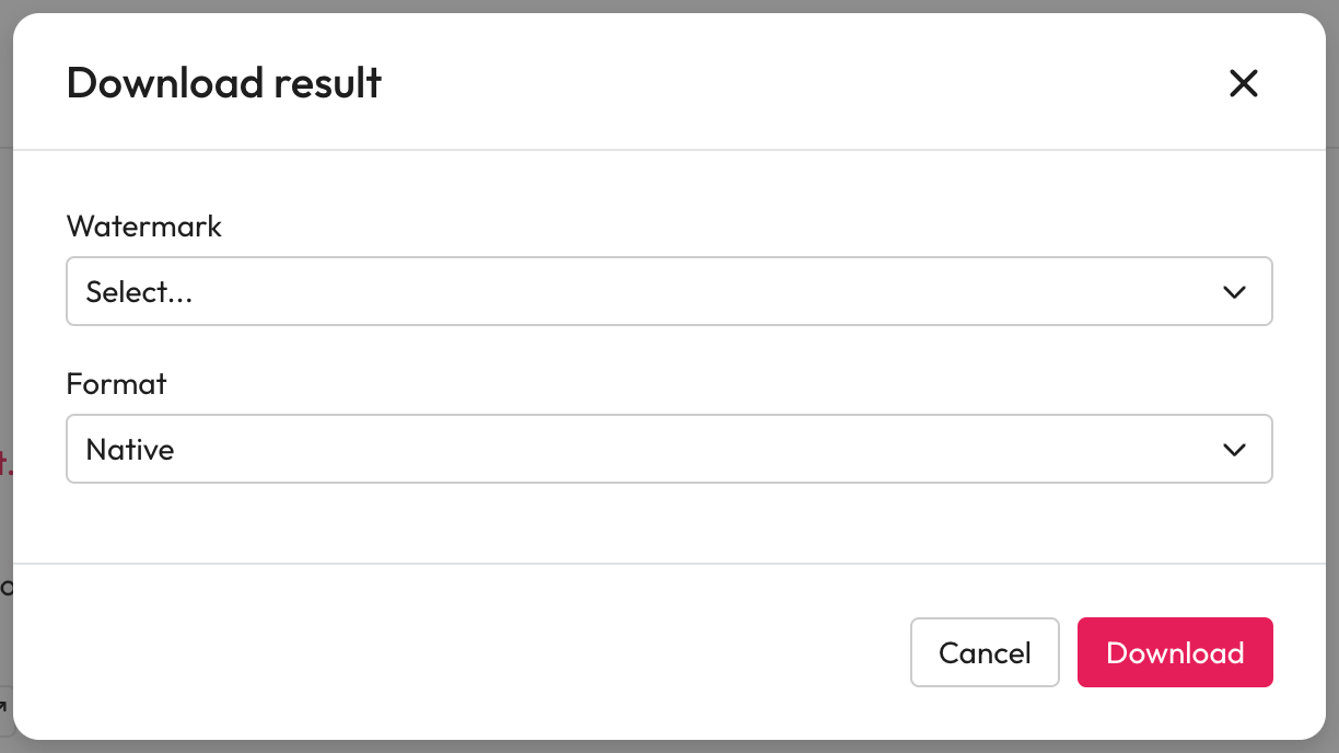 If no watermark has been selected you can choose to download the item as the native format or as a PDF.