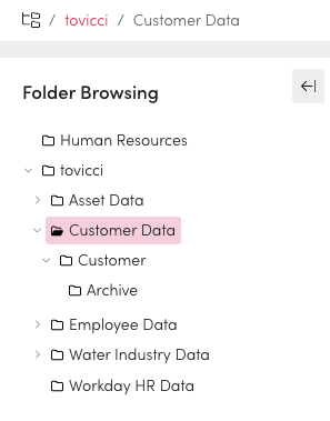You can navigate your data by browsing subfolders. You can share information and add it to collections or SAR from a folder. You can browse your folders based on business area or function.&#x20;