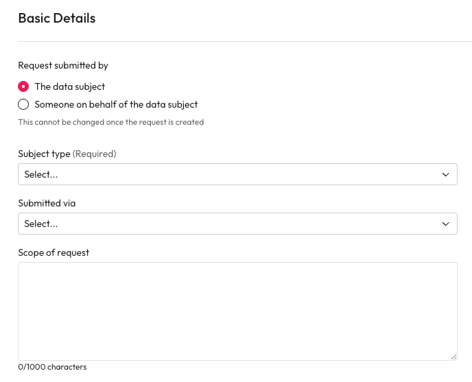 Request submitted by - Select who is making this request, the data subject or someone on their behalf.