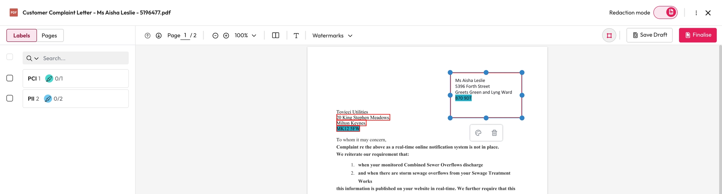 Draft redactions can be used if you need to come back to it later or to get others to review a document before a redaction is finalised.