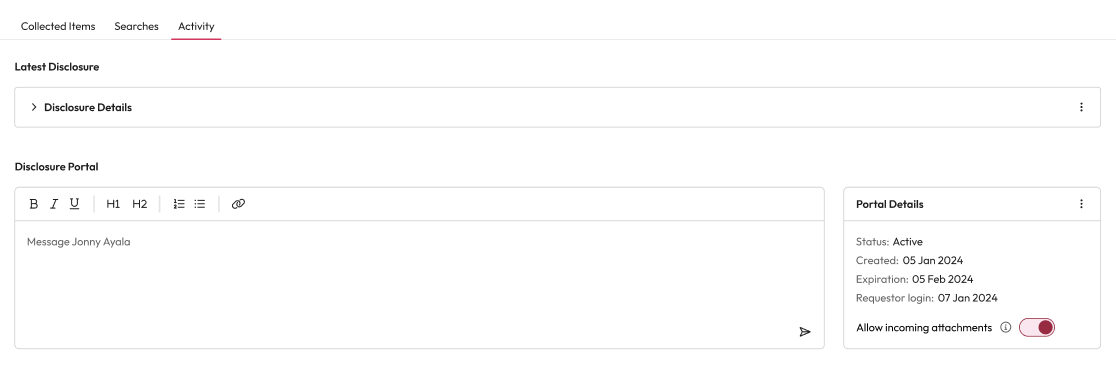 You can keep all your data request work in one place. 2-way messaging gives the requestor and assignee a way to message and share files via the Disclosure Portal. Keeping communications, files and updates about a request in one place.
