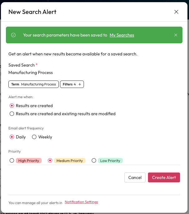Once you're happy with your settings, select Create Alert.