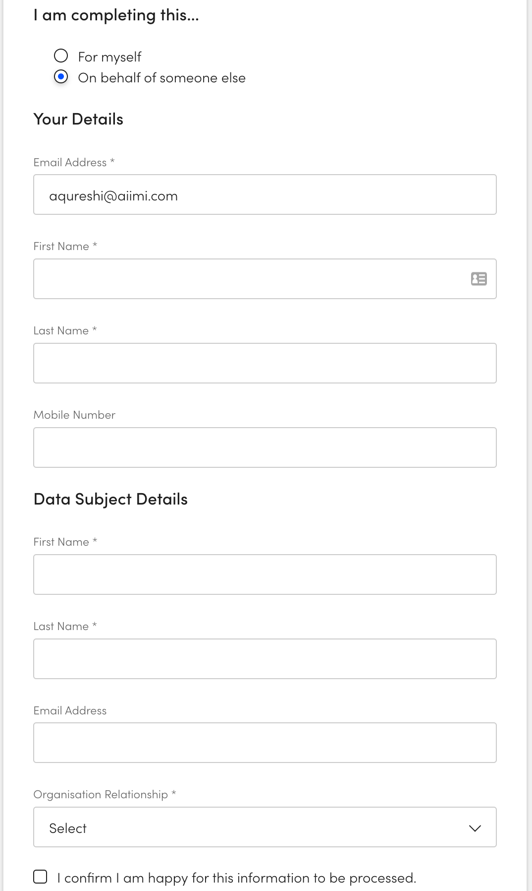 For myself - if the data subject is completing the request.