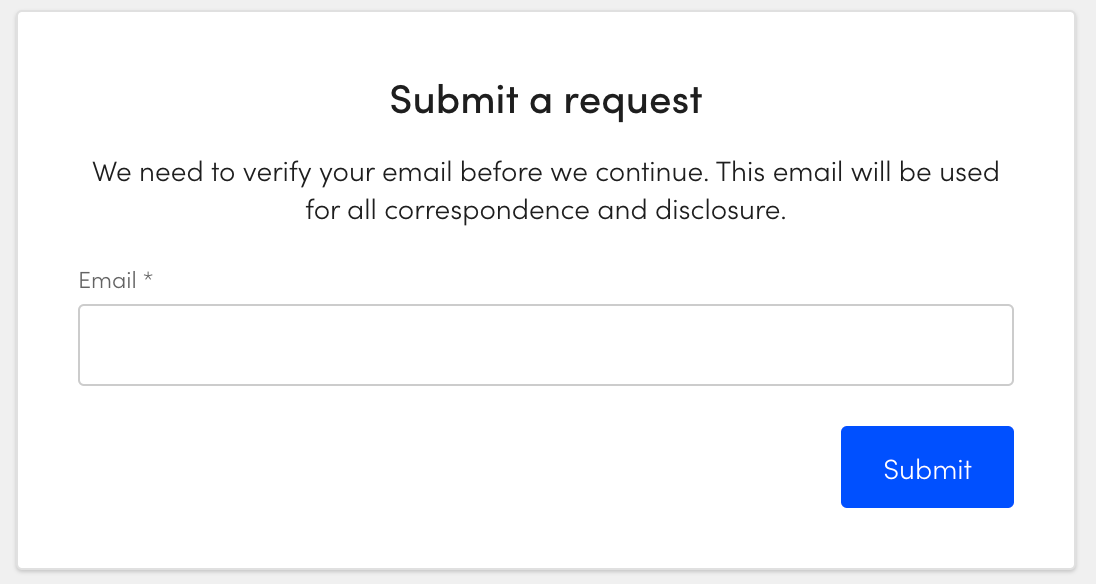 A requestor must use a valid email address to create a request from the Disclosure Portal.
