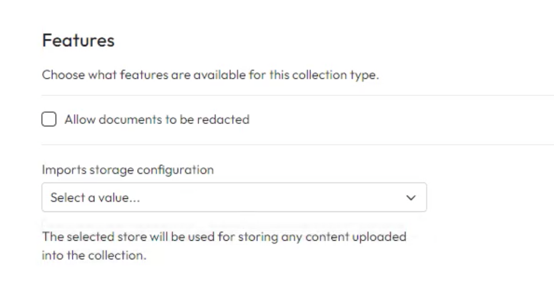 1. **Allow documents to be redacted** - Check this to allow items to be redacted within collections of this type.