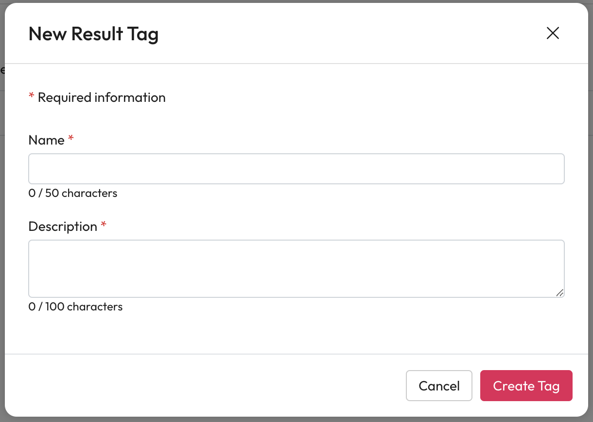 Result tags can be added to a result. These could help others understand why a result is in a collection, what actions have or, should be performed on a result, etc.